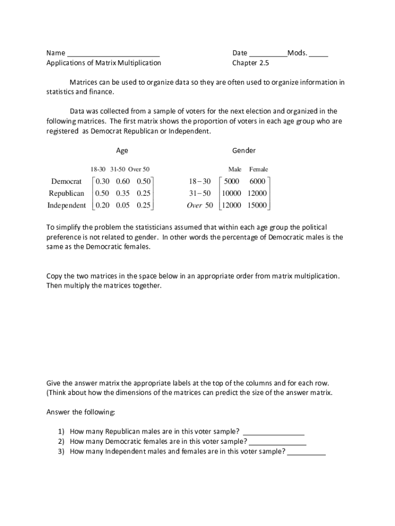Get the free Applications of Matrix Multiplication