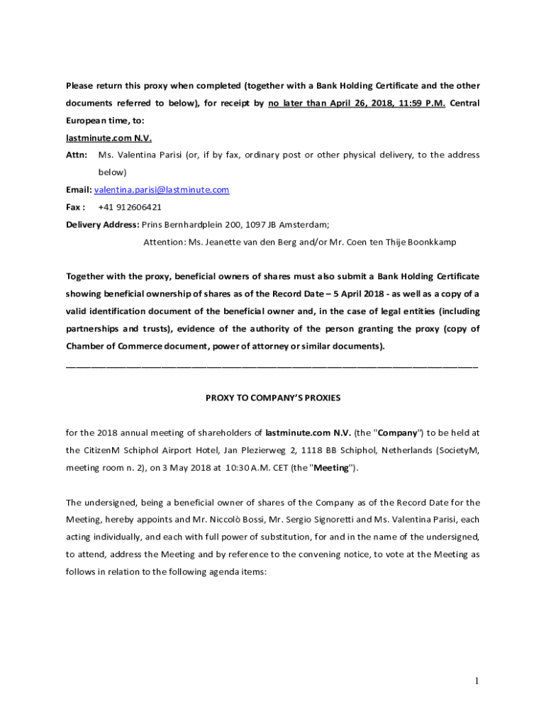 Please return this proxy when completed (together with a Bank Holding Certificate and the other documents referred to below), for receipt by no later than April 26, 2018, 11:59 P.M. Central European