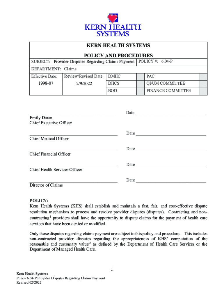 POLICY AND PROCEDURESSUBJECT: Provider Disputes Regarding Claims Payment POLICY #: 6.04P
