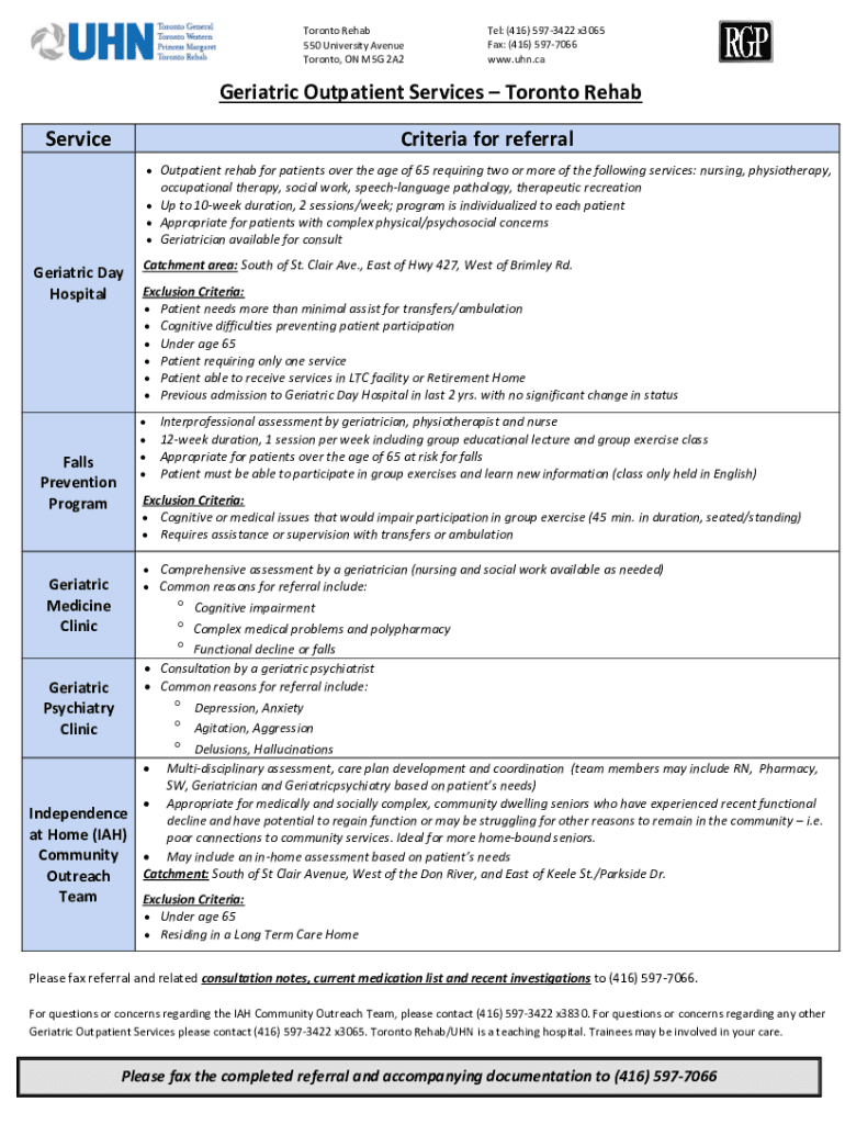 Get the free uhn geriatrics referral - fill online, printable, fillable, blank
