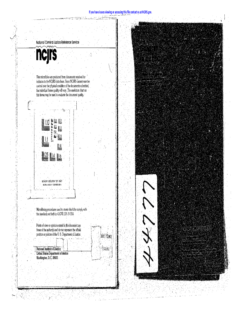 If you have issues viewing or accessing this file contact us at CARS.gov. National Criminal Justice Reference Services microfiche was produced from documents received for c, inclusion in the CARS