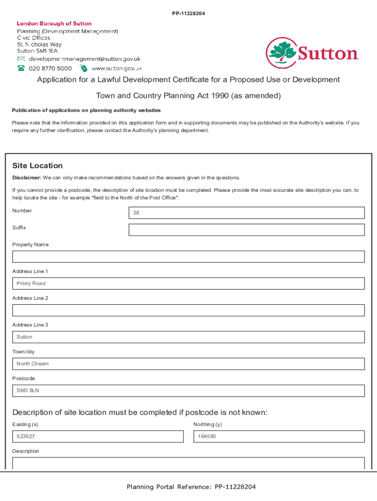 PP11228204Application for a Lawful Development Certificate for a Proposed Use or Development Town and Country Planning Act 1990 (as amended) Publication of applications on planning authority websites