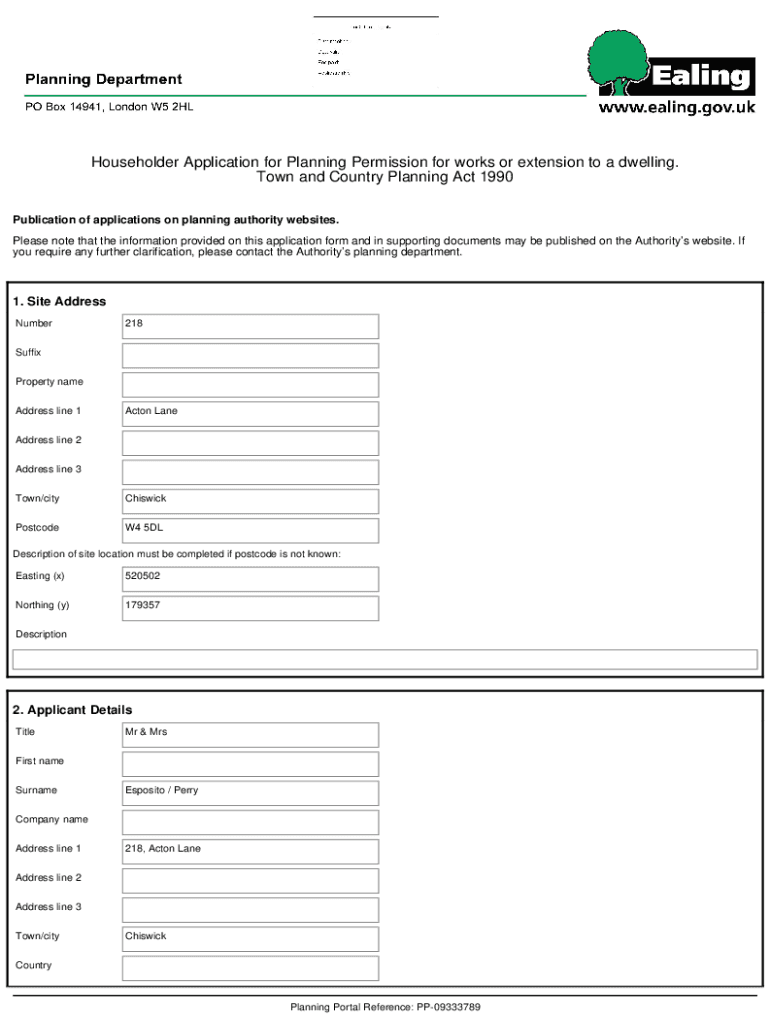 Householder Application for Planning Permission for works or extension to a dwelling. Town and Country Planning Act 1990 Publication of applications on planning authority websites. Please note that