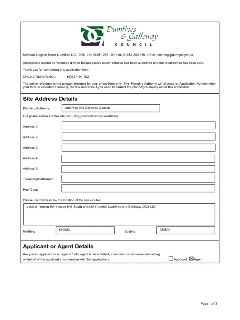 Kirk bank English Street Humphries DG1 2HS Tel: 01387 260 199 Fax: 01387 260 188 Email: planning@dumgal.gov.uk Applications cannot be validated until all the necessary documentation has been submitted