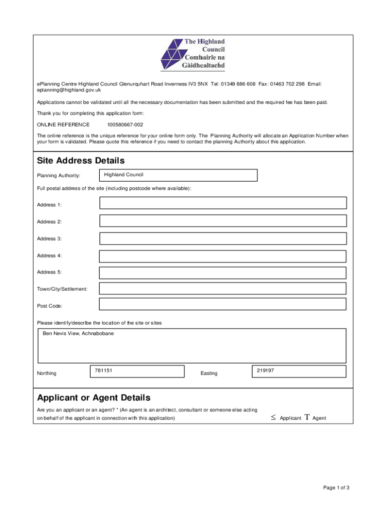 Planning Center Highland Council Glenurquhart Road Inverness IV3 5NX Tel: 01349 886 608 Fax: 01463 702 298 Email: eplanning@highland.gov.uk Applications cannot be validated until all the necessary