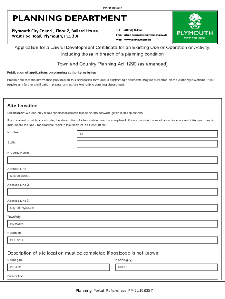 PP11198387Application for a Lawful Development Certificate for an Existing Use or Operation or Activity, including those in breach of a planning condition Town and Country Planning Act 1990 (as amended)