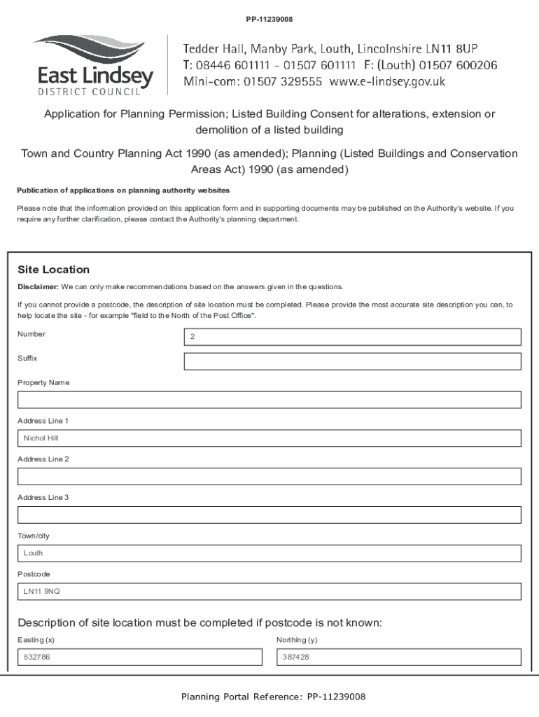PP11239008Application for Planning Permission; Listed Building Consent for alterations, extension or demolition of a listed building Town and Country Planning Act 1990 (as amended); Planning (Listed