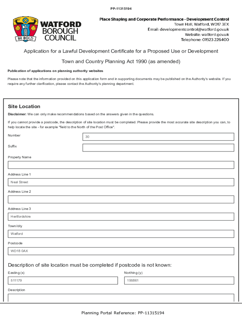 PP11315194Application for a Lawful Development Certificate for a Proposed Use or Development Town and Country Planning Act 1990 (as amended) Publication of applications on planning authority websites