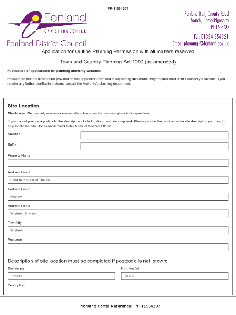 PP11554207Application for Outline Planning Permission with all matters reserved Town and Country Planning Act 1990 (as amended) Publication of applications on planning authority websites Please note