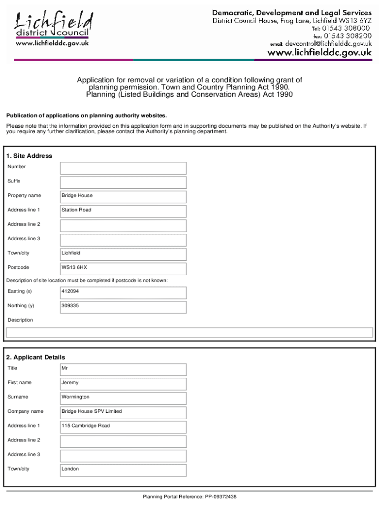 Application for removal or variation of a condition following grant of planning permission. Town and Country Planning Act 1990. Planning (Listed Buildings and Conservation Areas) Act 1990 Publication