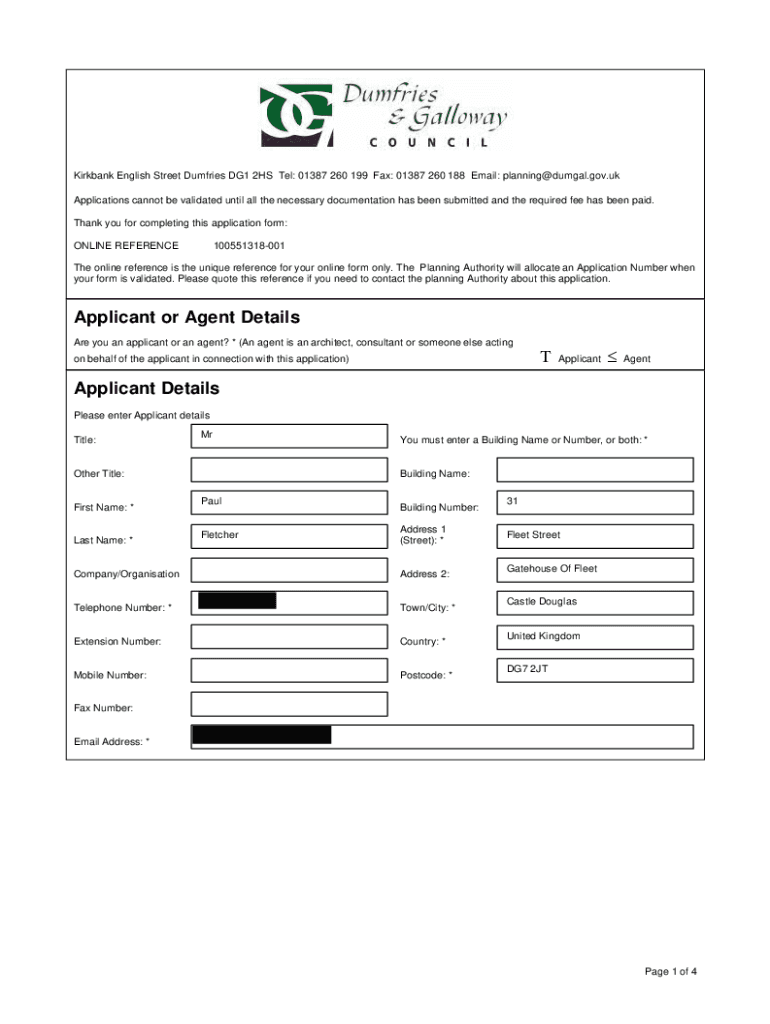 Kirk bank English Street Humphries DG1 2HS Tel: 01387 260 199 Fax: 01387 260 188 Email: planning@dumgal.gov.uk Applications cannot be validated until all the necessary documentation has been submitted