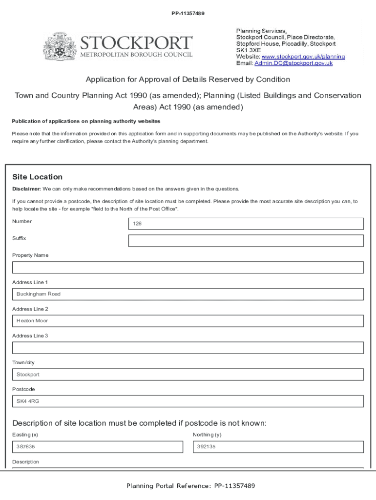 PP11357489Application for Approval of Details Reserved by Condition Town and Country Planning Act 1990 (as amended); Planning (Listed Buildings and Conservation Areas) Act 1990 (as amended) Publication
