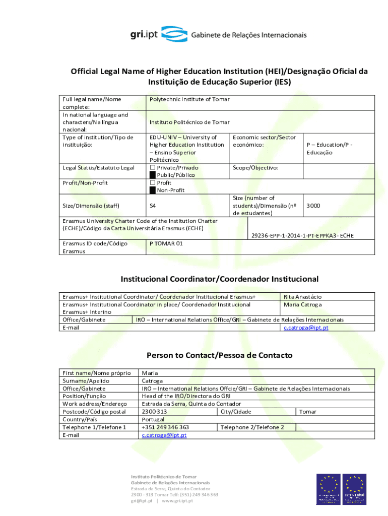 Official Legal Name of Higher Education Institution (HE)/Design Official the Institution de Educao Superior (IES) Full legal name/Nome complete: In national language and characters/Na Angus national: