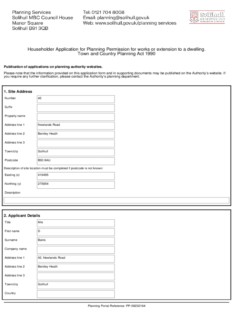 Householder Application for Planning Permission for works or extension to a dwelling. Town and Country Planning Act 1990 Publication of applications on planning authority websites. Please note that