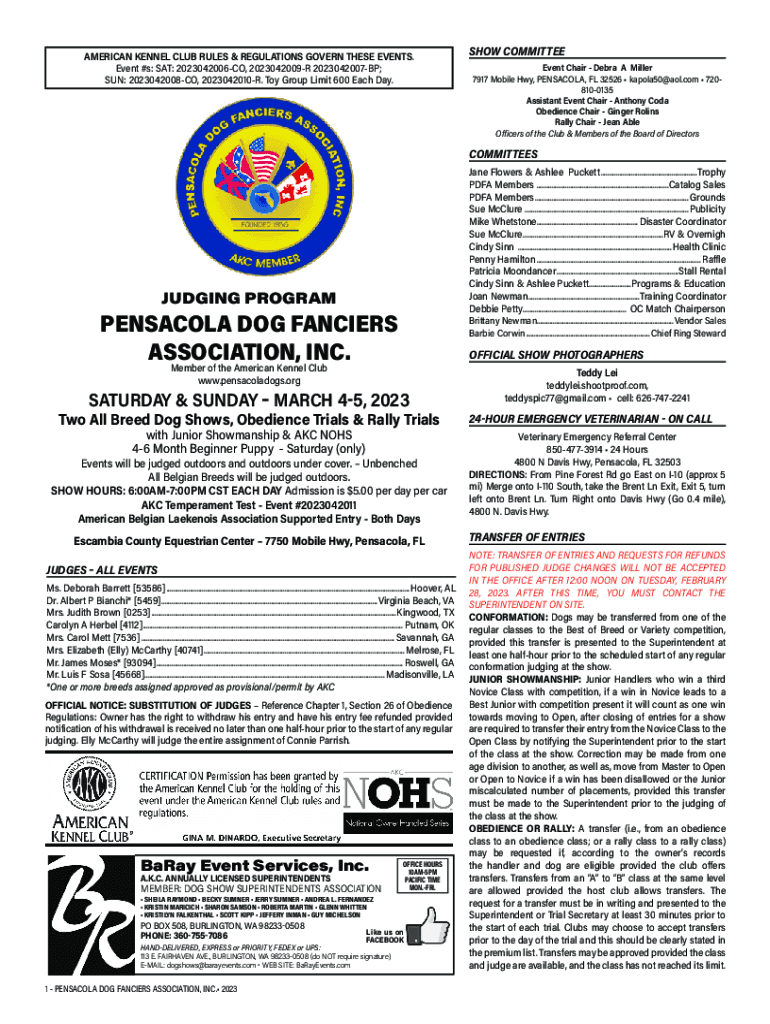 AMERICAN KENNEL CLUB RULES & REGULATIONS GOVERN THESE EVENTS. Event’s: SAT: 2023042006CO, 2023042009R 2023042007BP; SUN: 2023042008CO, 2023042010R. Toy Group Limit 600 Each Day. SHOW COMMITTEE Event