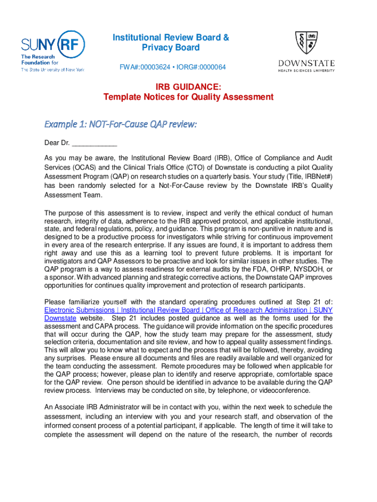 Get the free NOT-For-Cause QAP review - IRB GUIDANCE