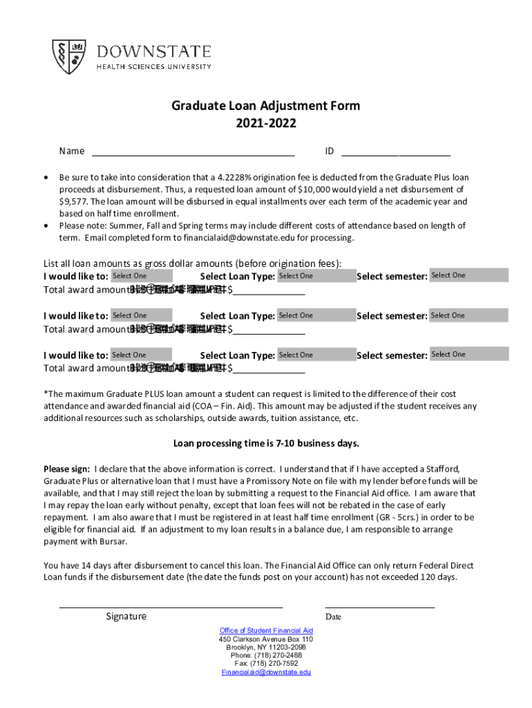 Any graduate student who needs to make adjustments to their existing loan must file the graduate loan adjustment form.