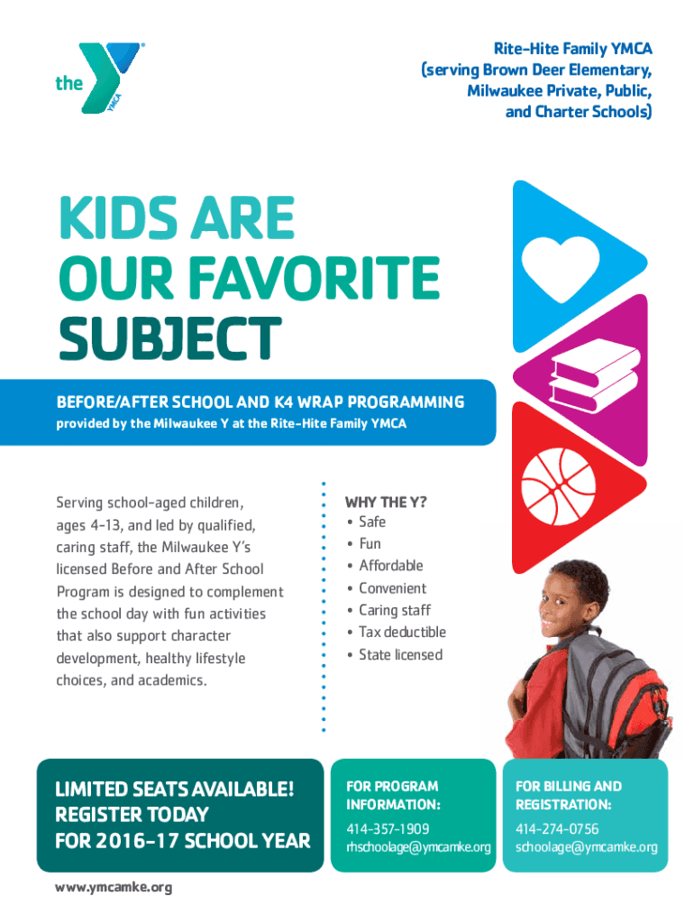 Ritchie Family YMCA (serving Brown Deer Elementary, Milwaukee Private, Public, and Charter Schools)Kids are our favorite subject Before/After School and K4 Wrap Programming provided by the Milwaukee