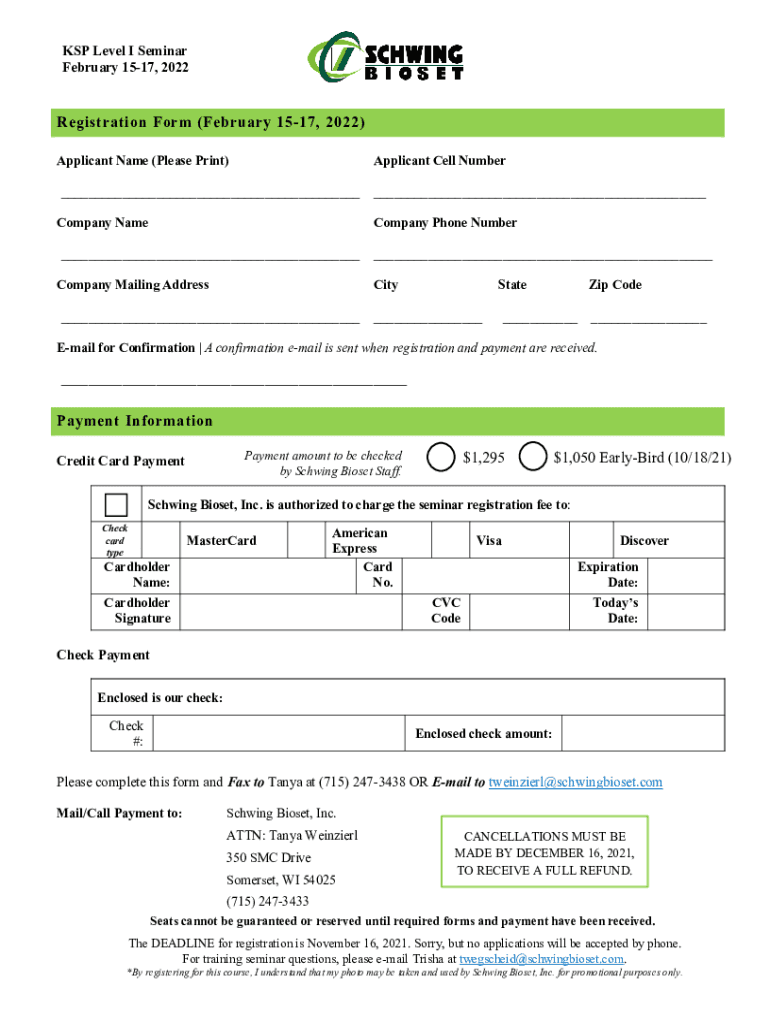 Schwinn Bioset DSP Level I Service Seminar Information Class dates: February 1517, 2022 | Training is located in Fort Myers, FL | Register by November 16, 2021, Class size is limited to 6 people.
