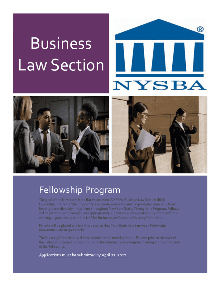 Business Law SectionFellowship Program The goal of the New York State Bar Association (NY SBA) Business Law Section (BLS) Fellowship Program (the Program) is to create a network and forge relationships