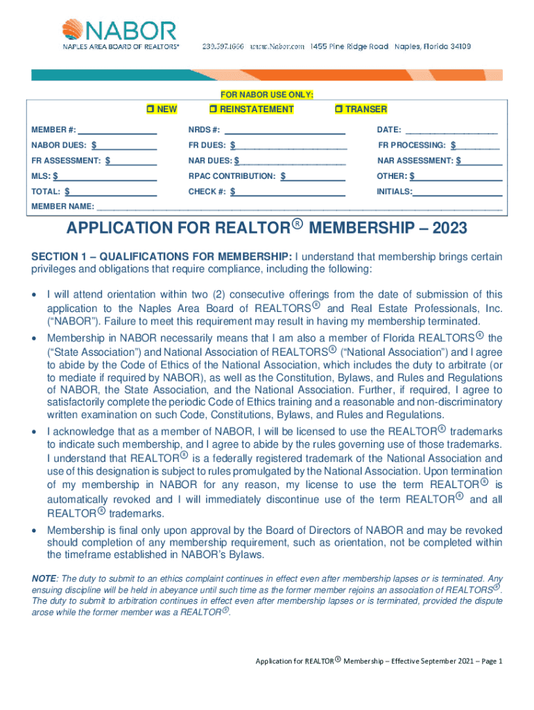 FOR LABOR USE ONLY: NEW REINSTATEMENT TRANSERMEMBER #:RDS #:DATE: ___LABOR DUES: $FR DUES: $___FR PROCESSING: $___FR ASSESSMENT: $NAR DUES: $___NEAR ASSESSMENT: $MLS: $RPAC CONTRIBUTION: $OTHER: $TOTAL: