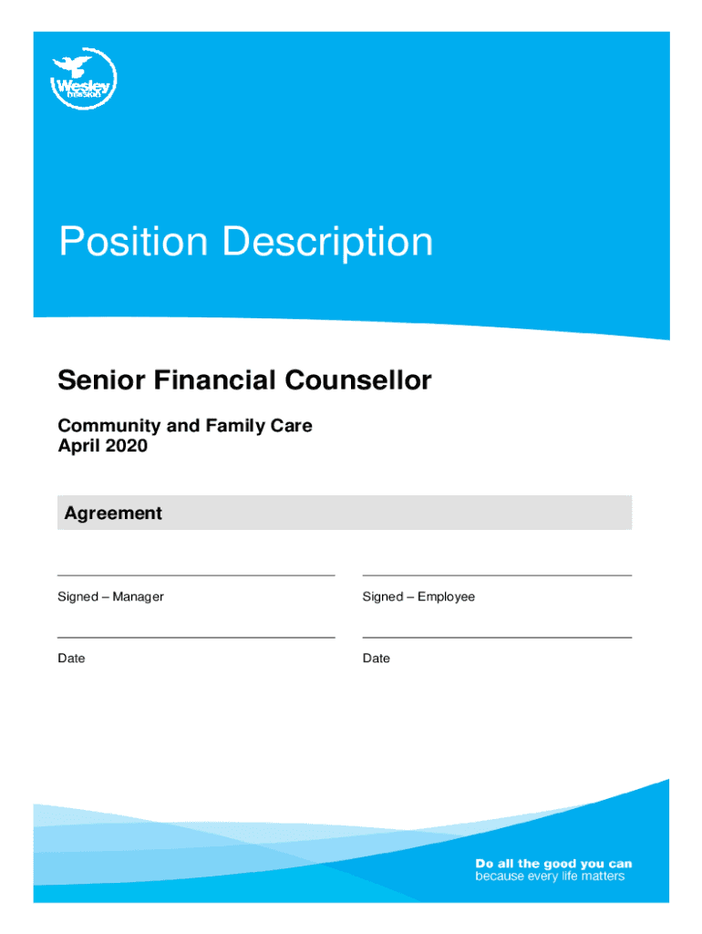 Position Description Senior Financial Counselor Community and Family Care April 2020AgreementSigned ManagerSigned EmployeeDateDateFinancial CounsellorManagers initials ___Employees initials ___Page