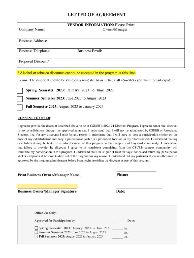 25800 Carlos Bee Blvd. Old University Union 314, Hayward, CA | 94542 Customer Service: (510) 8854843CSUEB DISCOUNT PROGRAM Renewal Letter Dear Business Owner/Manager, We appreciate your previous partnership