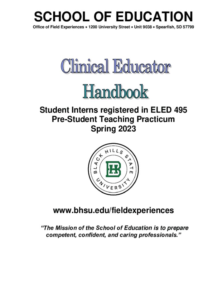 SCHOOL OF EDUCATION Office of Field Experiences 1200 University Street Unit 9038 Spearfish, SD 57799Student Interns registered in LED 495 President Teaching Practicum Spring 2023www.bhsu.edu/fieldexperiences