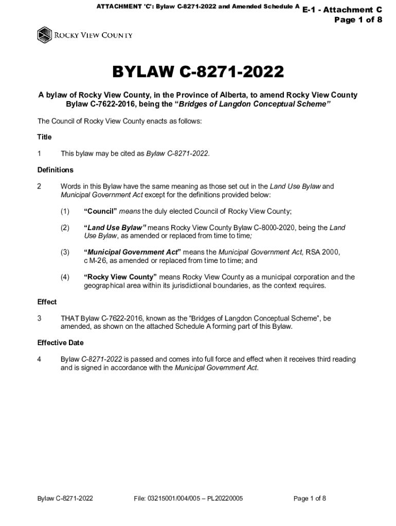 ATTACHMENT \'C\': Bylaw C82712022 and Amended Schedule AE1 Attachment C Page 1 of 8BYLAW C82712022 A bylaw of Rocky View County, in the Province of Alberta, to amend Rocky View County Bylaw C76222016,