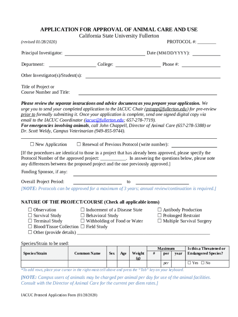 IACUC Protocol Application and Review Process word template: frequently asked questions