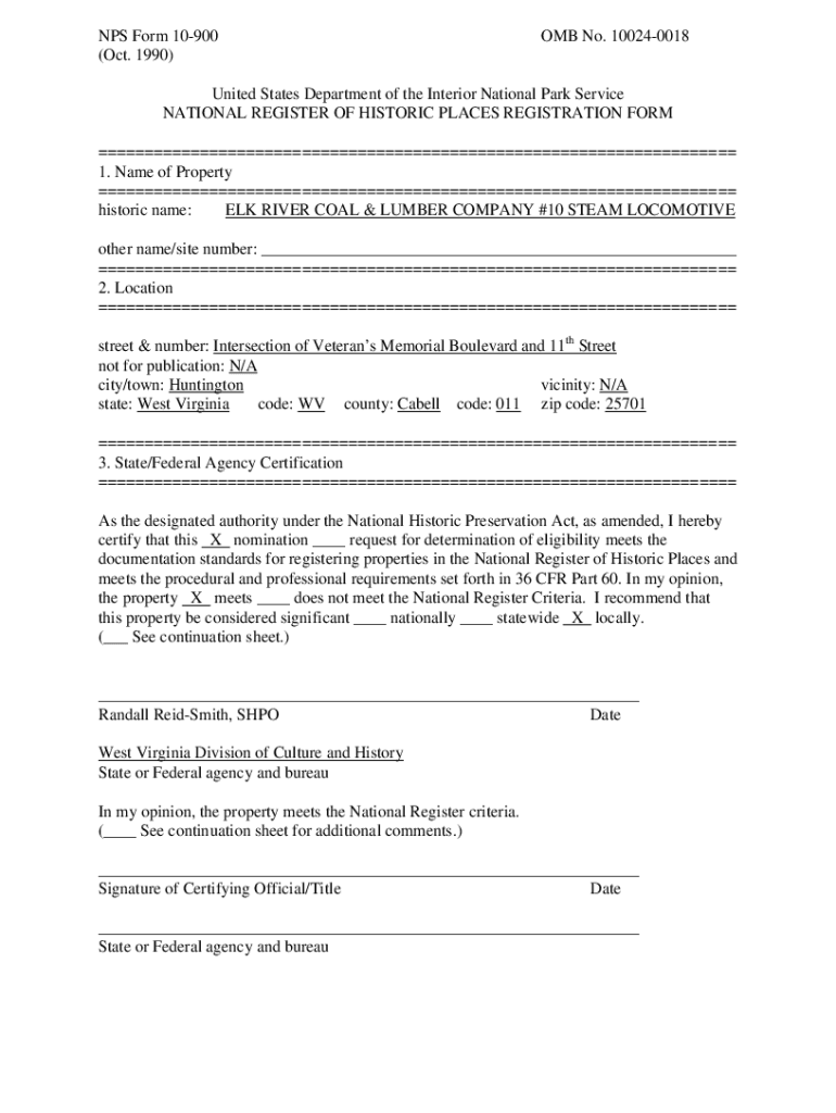NPS Form 10900 (Oct. 1990)OMB No. 100240018United States Department of the Interior National Park Service NATIONAL REGISTER OF HISTORIC PLACES REGISTRATION FORM 1. Name of Property. Historic name: