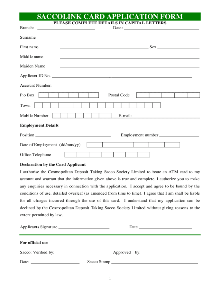 Anyone who is a member or intends to become a member of a sacco (savings and credit cooperative organization) will need a sacco link card application.