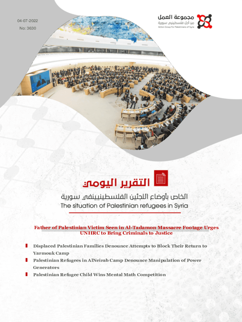 04072022 No: 3630Father of Palestinian Victim Seen in Layamon Massacre Footage Urges UNHRC to Bring Criminals to Justice Displaced Palestinian Families Denounce Attempts to Block Their Return to Armonk
