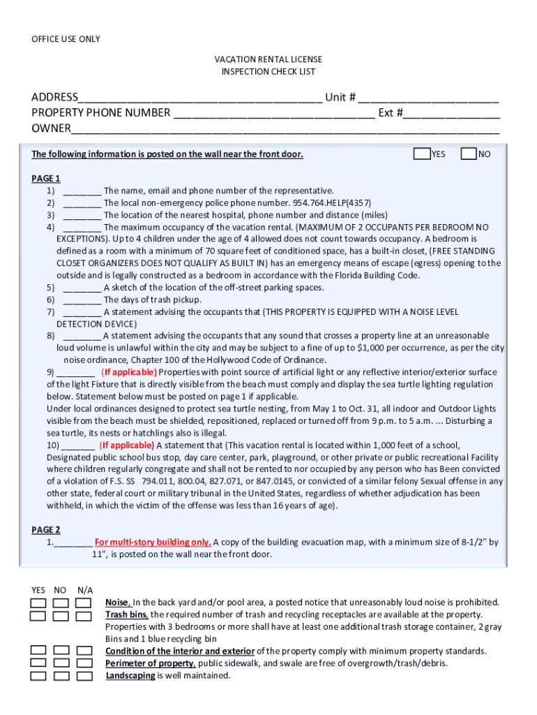 Get the free office use only vacation rental license inspection check list