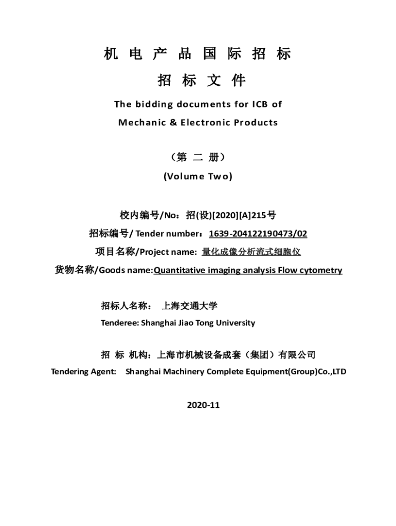 The bidding documents for ICB of Mechanic & Electronic Products (Volume Two)/No()[2020][A]215 / Tender number1639204122190473/02 /Project name: /Goods name:Quantitative imaging analysis Flow cytometry