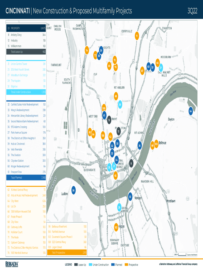 CINCINNATI | New Construction & Proposed Multifamily Projects IDPROPERTY8Artistry Cincy12Industry15515Willkommen163Total LeaseUp66221Union Central TowerUNITS 344717439 7338 7228125 205 West Fourth