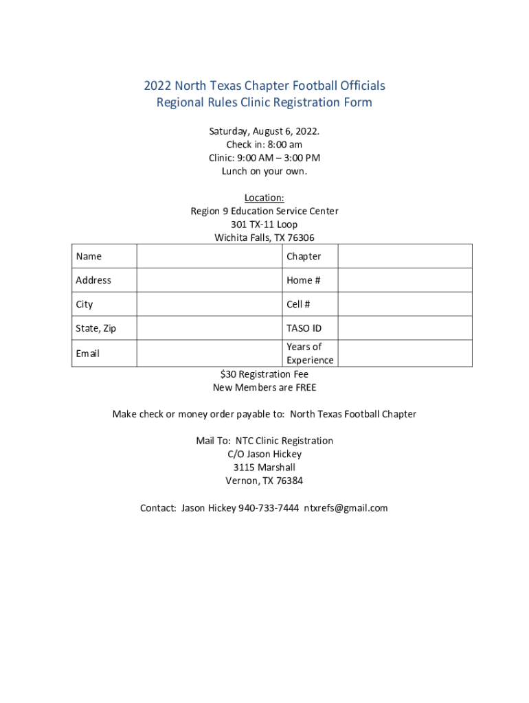 Regional Rules Clinic Registration Form