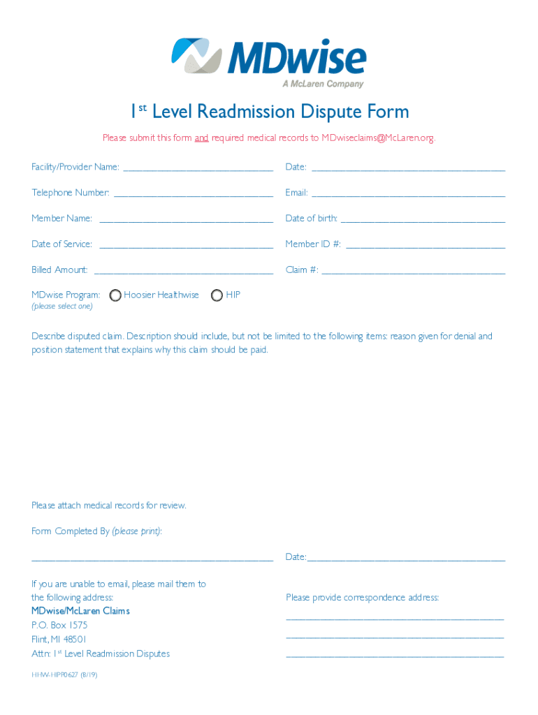 Please submit this form and required medical records to MDwiseclaims@McLaren.org.