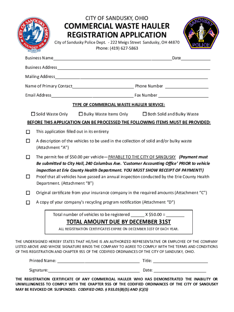 Get the free city of sandusky, ohio - commercial waste hauler registration ...