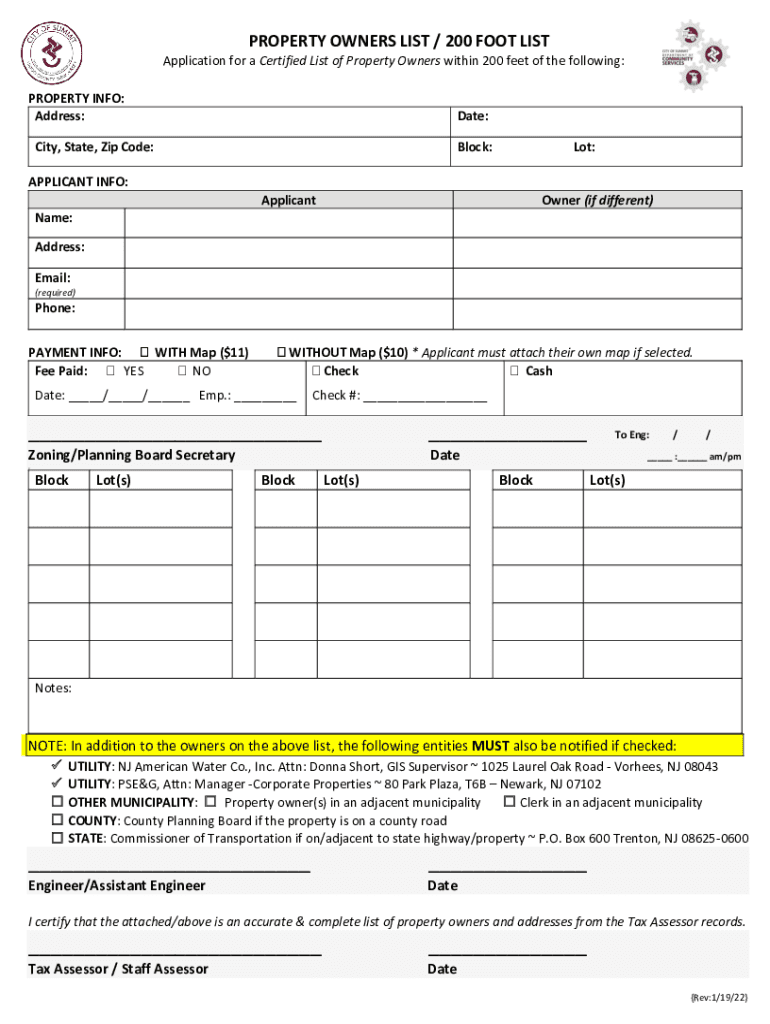 Get the free REQUEST FOR PROPERTY OWNERS WITHIN 200 FEET