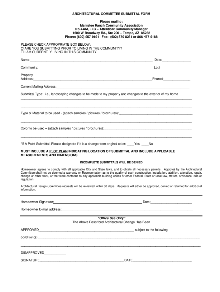 Architectural Committee Submittal Form is not the form you're looking for?Search for another form here.