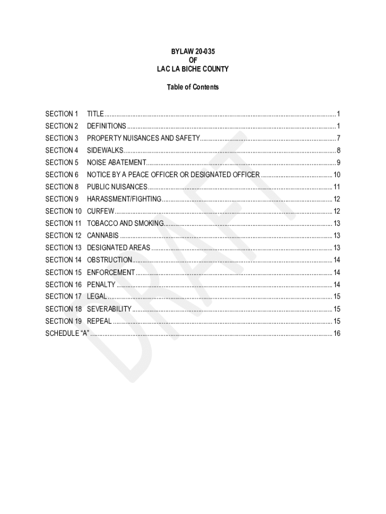 BYLAW 20035 OF LAC LA NICHE COUNTY Table of Contents Sections 1TITLE .....................................................................................................................................