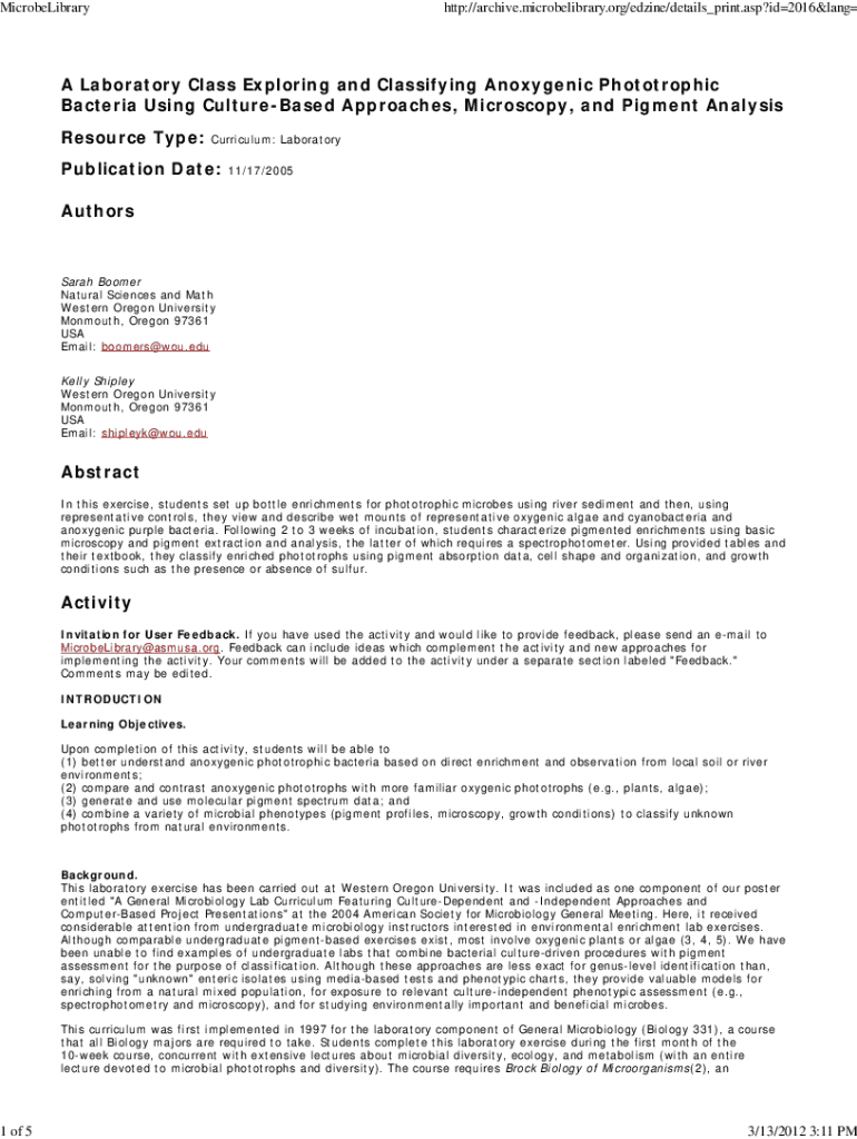 MicrobeLibrary1 of 5http://archive.microbelibrary.org/edzine/details_print.asp?id2016&langA Laboratory Class Exploring and Classifying Antigenic Phototrophic