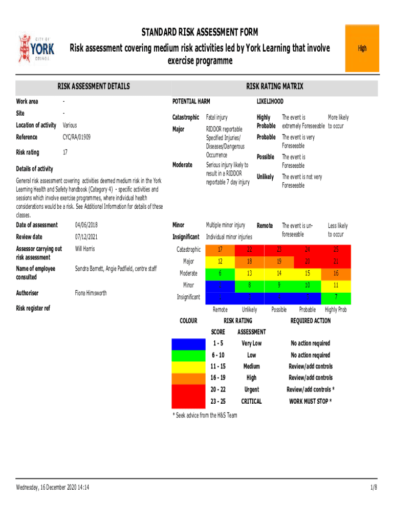 Fill out your standard risk assessment form online with pdfFiller!