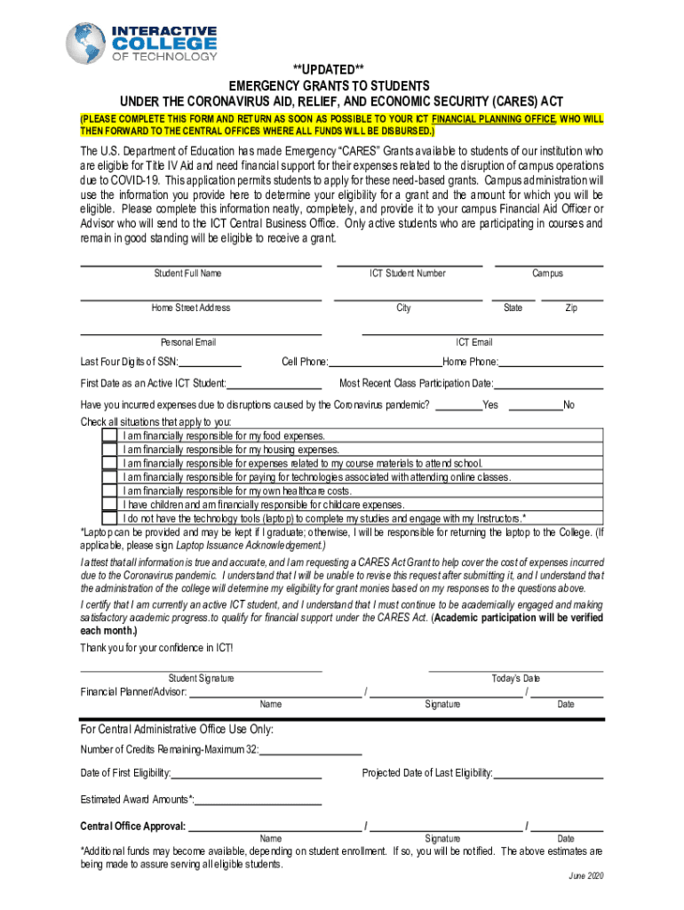 INTERACTIVE COLLEGE OF TECHNOLOGY OPED# 02284300 HIGHER EDUCATION EMERGENCY RELIEF FUND CARES ACT GRANT DISCLOSURE REPORT UPDATED SEPTEMBER 30, 2020, The below information is required to be easily