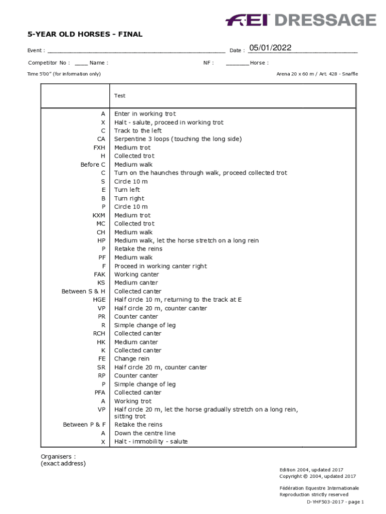 5YEAR OLD HORSES FINAL05/01/2022Event : ___ Date : ___