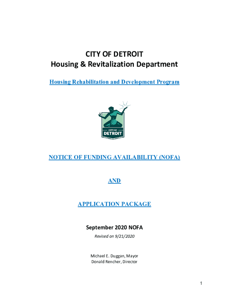 CITY OF DETROIT Housing & Revitalization Department Housing Rehabilitation and Development Programmatic OF FUNDING AVAILABILITY (NOVA)APPLICATION PACKAGE September 2020 NOVA Revised on 9/21/2020Michael