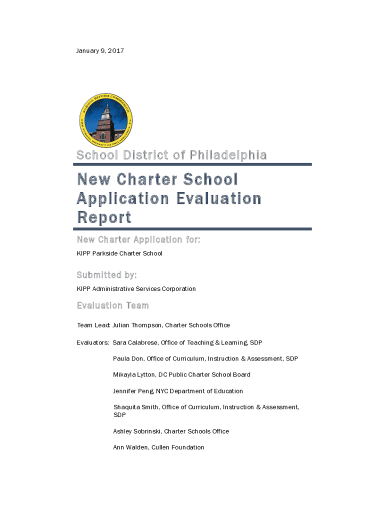 January 9, 2017School District of Philadelphia Charter School Application Evaluation Report New Charter Application for: IPP Park side Charter SchoolSubmitted by: IPP Administrative Services CorporationEvaluation