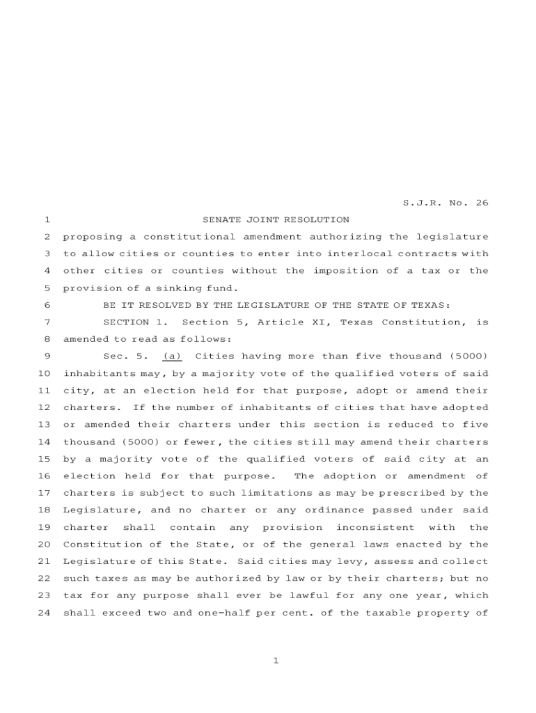 S.J.R.ANO. A26 1SENATE JOINT RESOLUTION2proposing a constitutional amendment authorizing the legislature3to allow cities or counties to enter into interlocal contracts with4other cities or counties