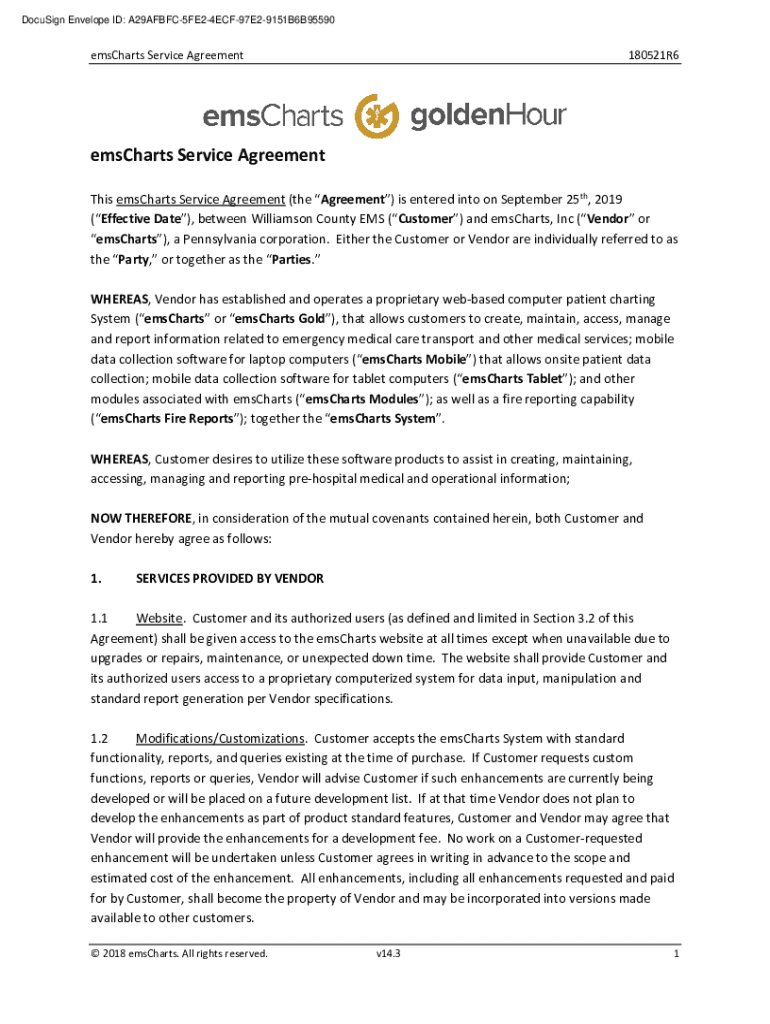DocuSign Envelope ID: A29AFBFC5FE24ECF97E29151B6B95590emsCharts Service Agreement180521R6emsCharts Service Agreement This charts Service Agreement (the Agreement) is entered into on September 25th,